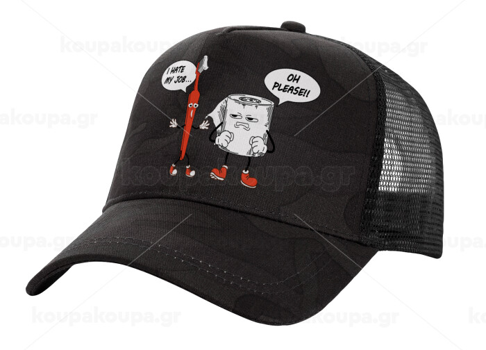 I hate my job, Adult Structured Trucker Hat, with Mesh, Dark Army (100% COTTON, ADULT, UNISEX, ONE SIZE)
