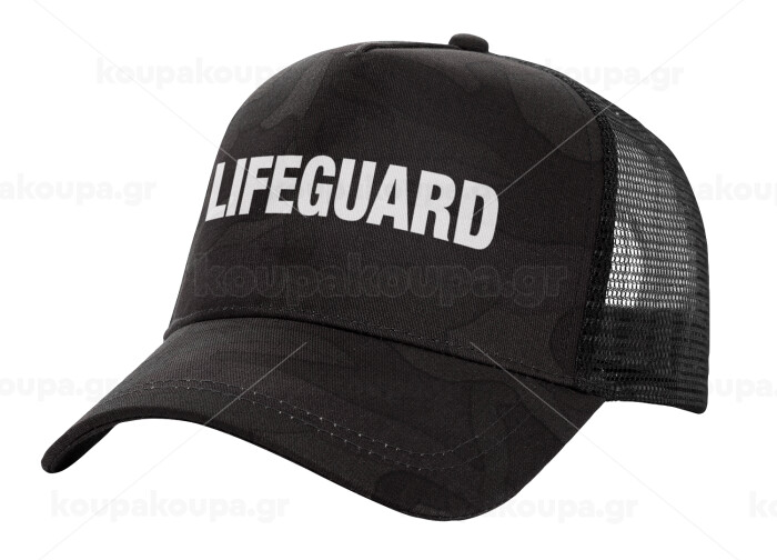 Lifeguard, Adult Structured Trucker Hat, with Mesh, Dark Army (100% COTTON, ADULT, UNISEX, ONE SIZE)