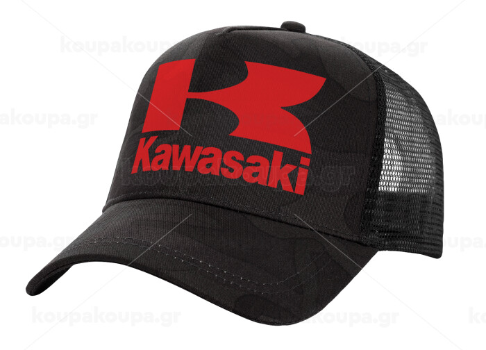 Kawasaki, Adult Structured Trucker Hat, with Mesh, Dark Army (100% COTTON, ADULT, UNISEX, ONE SIZE)