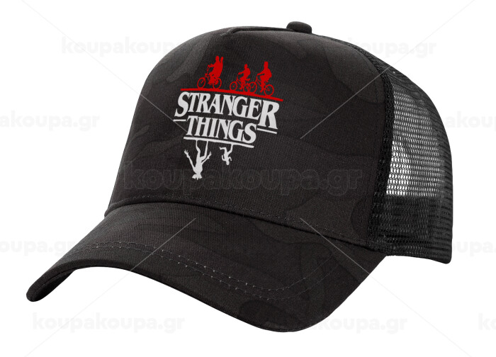 Stranger Things upside down, Adult Structured Trucker Hat, with Mesh, Dark Army (100% COTTON, ADULT, UNISEX, ONE SIZE)