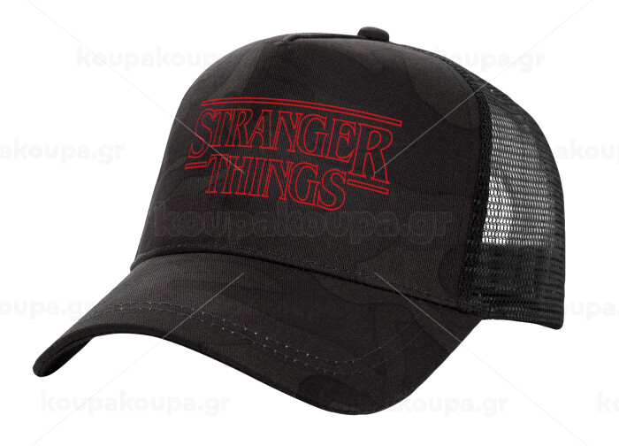 Stranger Things Logo, Adult Structured Trucker Hat, with Mesh, Dark Army (100% COTTON, ADULT, UNISEX, ONE SIZE)