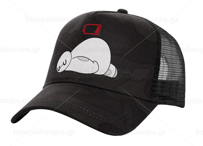Baymax battery low, Adult Structured Trucker Hat, with Mesh, Dark Army (100% COTTON, ADULT, UNISEX, ONE SIZE)