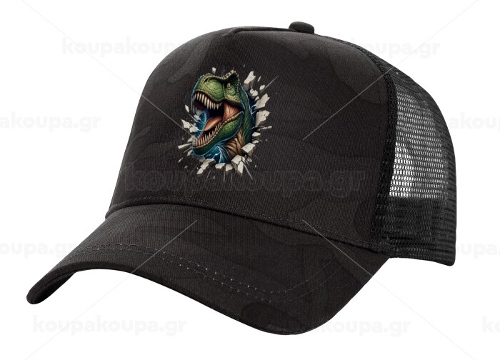 Dinosaur break wall, Adult Structured Trucker Hat, with Mesh, Dark Army (100% COTTON, ADULT, UNISEX, ONE SIZE)