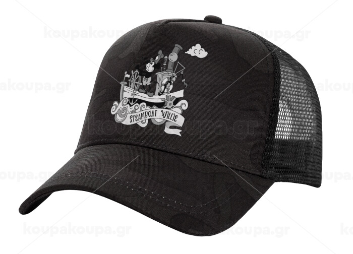 Mickey steamboat, Adult Structured Trucker Hat, with Mesh, Dark Army (100% COTTON, ADULT, UNISEX, ONE SIZE)