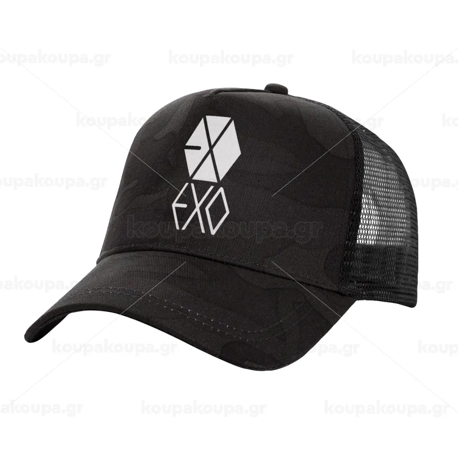 EXO Band korea, Adult Structured Trucker Hat, with Mesh, Dark Army (100% COTTON, ADULT, UNISEX, ONE SIZE)