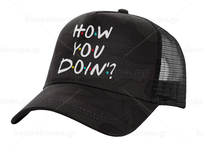 Friends How You Doin'?, Adult Structured Trucker Hat, with Mesh, Dark Army (100% COTTON, ADULT, UNISEX, ONE SIZE)