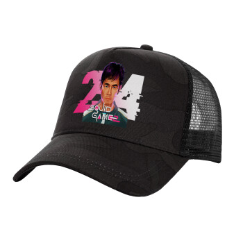 Squid game 456 Gi-Hun, Adult Structured Trucker Hat, with Mesh, Dark Army (100% COTTON, ADULT, UNISEX, ONE SIZE)