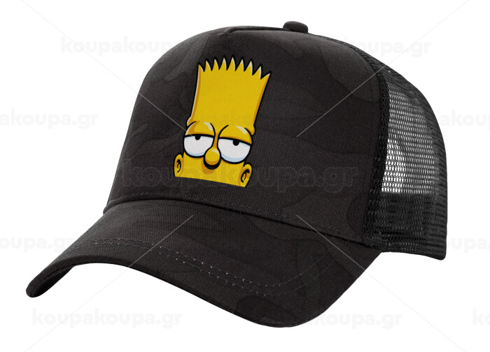 The Simpsons Bart, Adult Structured Trucker Hat, with Mesh, Dark Army (100% COTTON, ADULT, UNISEX, ONE SIZE)