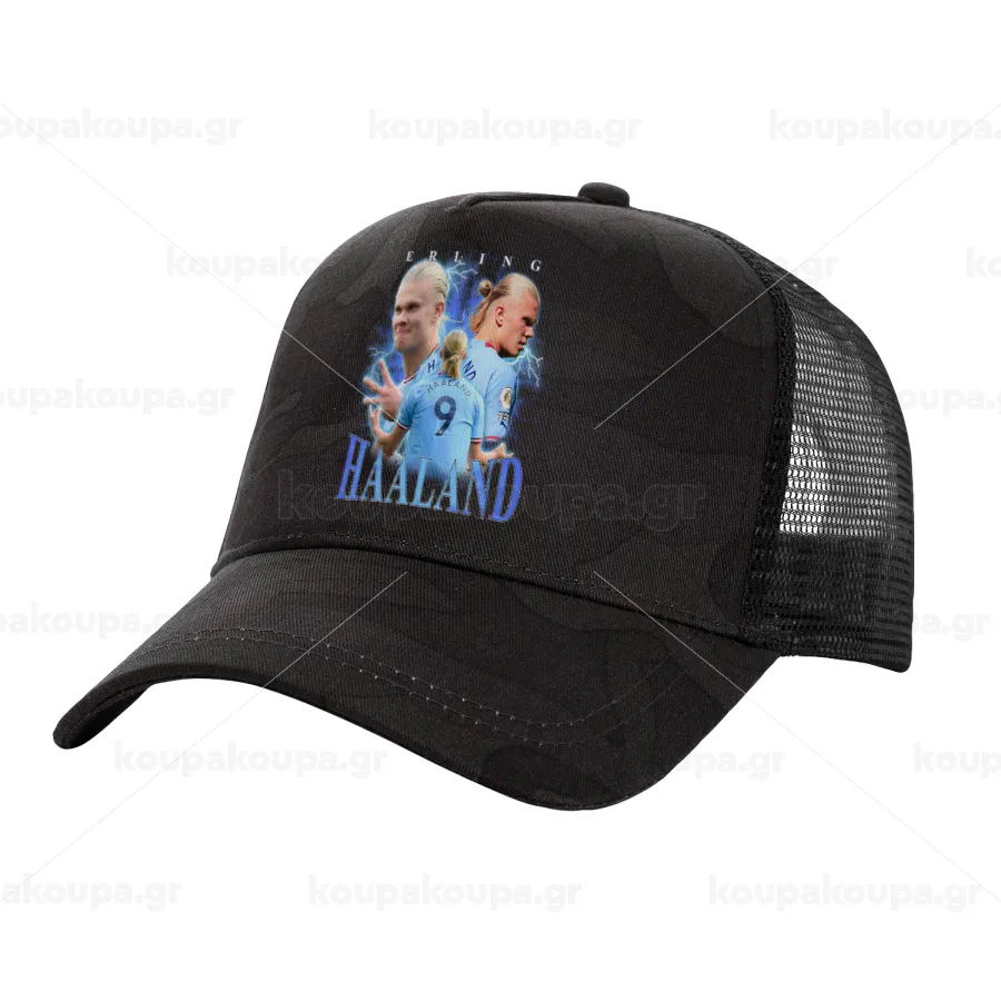 Erling Haaland, Adult Structured Trucker Hat, with Mesh, Dark Army (100% COTTON, ADULT, UNISEX, ONE SIZE)