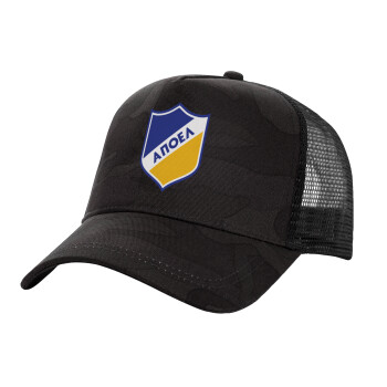 FC ΑΠΟΕΛ Λευκωσίας, Adult Structured Trucker Hat, with Mesh, Dark Army (100% COTTON, ADULT, UNISEX, ONE SIZE)