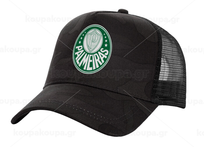 Palmeiras, Adult Structured Trucker Hat, with Mesh, Dark Army (100% COTTON, ADULT, UNISEX, ONE SIZE)