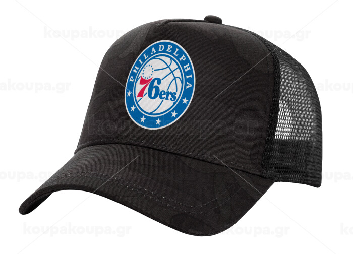 Philadelphia 76ers, Adult Structured Trucker Hat, with Mesh, Dark Army (100% COTTON, ADULT, UNISEX, ONE SIZE)