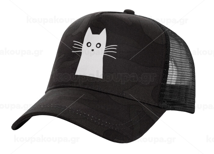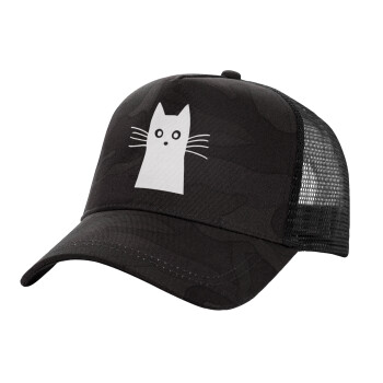 Black Cat, Adult Structured Trucker Hat, with Mesh, Dark Army (100% COTTON, ADULT, UNISEX, ONE SIZE)