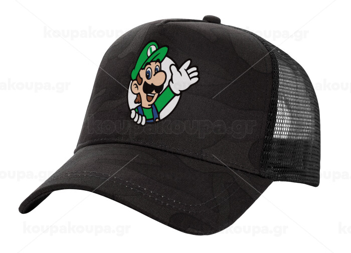 Super mario Luigi win, Adult Structured Trucker Hat, with Mesh, Dark Army (100% COTTON, ADULT, UNISEX, ONE SIZE)