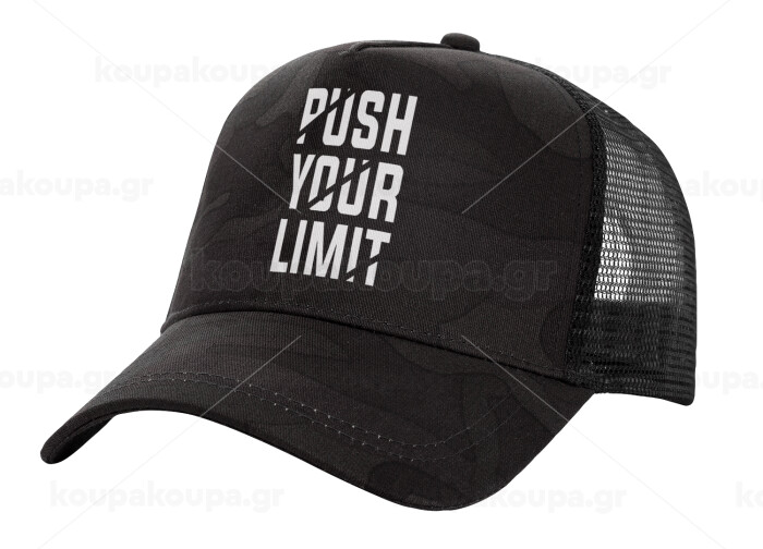 Push your limit, Adult Structured Trucker Hat, with Mesh, Dark Army (100% COTTON, ADULT, UNISEX, ONE SIZE)