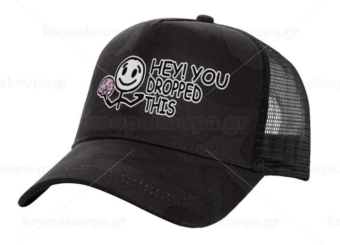 Hey! You dropped this, Adult Structured Trucker Hat, with Mesh, Dark Army (100% COTTON, ADULT, UNISEX, ONE SIZE)
