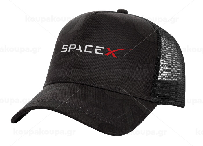Space X, Adult Structured Trucker Hat, with Mesh, Dark Army (100% COTTON, ADULT, UNISEX, ONE SIZE)