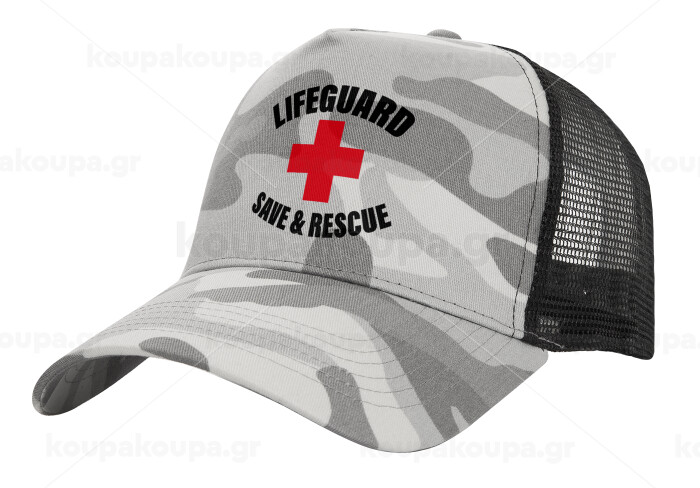 Lifeguard Save & Rescue, Adult Structured Trucker Hat, with Mesh, (Camouflage) Army Camo (100% COTTON, ADULT, UNISEX, ONE SIZE)
