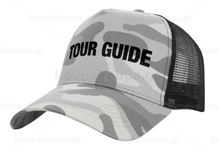 Tour Guide, Adult Structured Trucker Hat, with Mesh, (Camouflage) Army Camo (100% COTTON, ADULT, UNISEX, ONE SIZE)