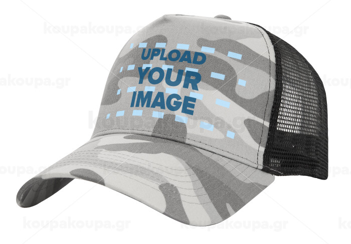 Upload your logo, Adult Structured Trucker Hat, with Mesh, (Camouflage) Army Camo (100% COTTON, ADULT, UNISEX, ONE SIZE)