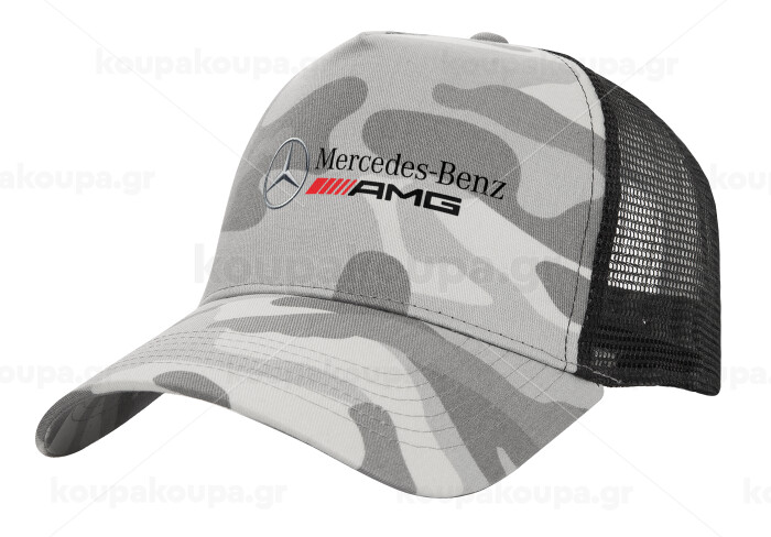 AMG Mercedes, Adult Structured Trucker Hat, with Mesh, (Camouflage) Army Camo (100% COTTON, ADULT, UNISEX, ONE SIZE)