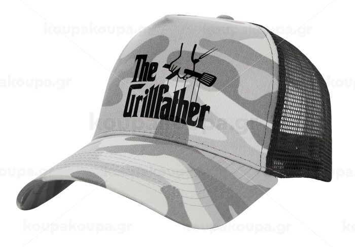 The Grill Father, Adult Structured Trucker Hat, with Mesh, (Camouflage) Army Camo (100% COTTON, ADULT, UNISEX, ONE SIZE)