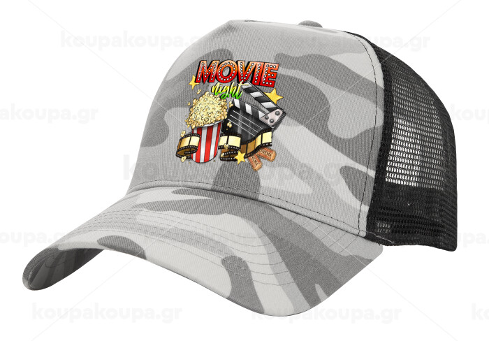 Movie night, Adult Structured Trucker Hat, with Mesh, (Camouflage) Army Camo (100% COTTON, ADULT, UNISEX, ONE SIZE)