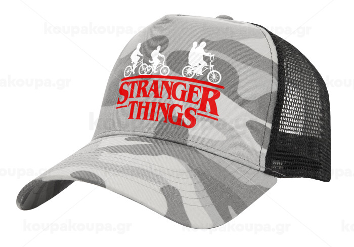 Stranger Things red, Adult Structured Trucker Hat, with Mesh, (Camouflage) Army Camo (100% COTTON, ADULT, UNISEX, ONE SIZE)