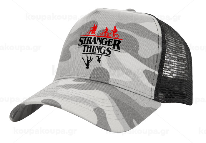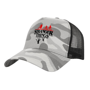 Stranger Things upside down, Adult Structured Trucker Hat, with Mesh, (Camouflage) Army Camo (100% COTTON, ADULT, UNISEX, ONE SIZE)
