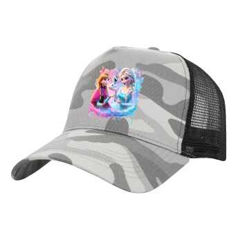 Elsa & Anna Princess, Adult Structured Trucker Hat, with Mesh, (Camouflage) Army Camo (100% COTTON, ADULT, UNISEX, ONE SIZE)
