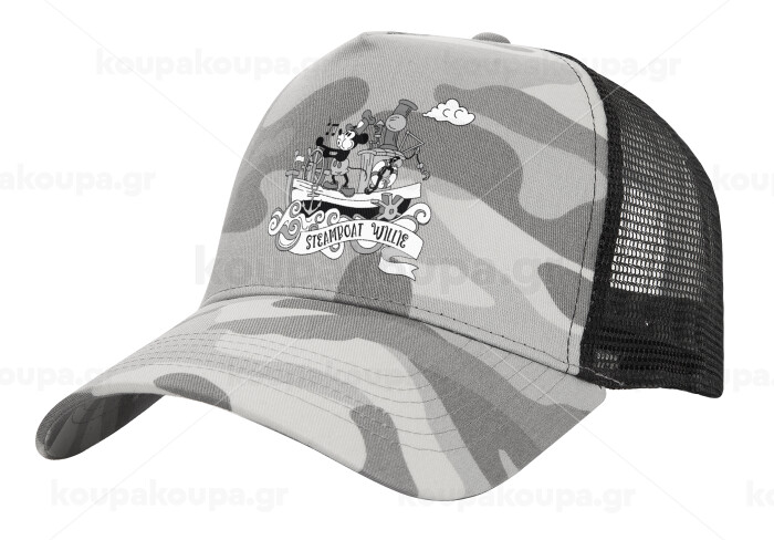 Mickey steamboat, Adult Structured Trucker Hat, with Mesh, (Camouflage) Army Camo (100% COTTON, ADULT, UNISEX, ONE SIZE)