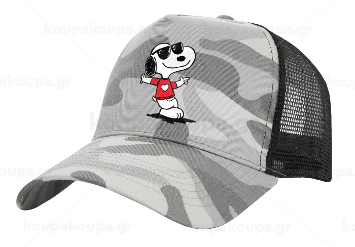 Snoopy καρδούλα, Adult Structured Trucker Hat, with Mesh, (Camouflage) Army Camo (100% COTTON, ADULT, UNISEX, ONE SIZE)
