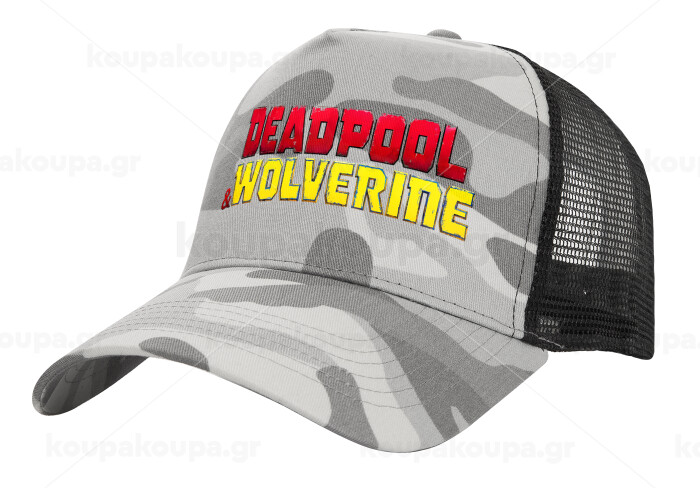 Superhero Deadpool Wolverine, Adult Structured Trucker Hat, with Mesh, (Camouflage) Army Camo (100% COTTON, ADULT, UNISEX, ONE SIZE)