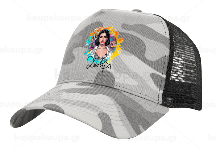 Dua lipa, Adult Structured Trucker Hat, with Mesh, (Camouflage) Army Camo (100% COTTON, ADULT, UNISEX, ONE SIZE)