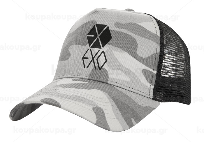 EXO Band korea, Adult Structured Trucker Hat, with Mesh, (Camouflage) Army Camo (100% COTTON, ADULT, UNISEX, ONE SIZE)
