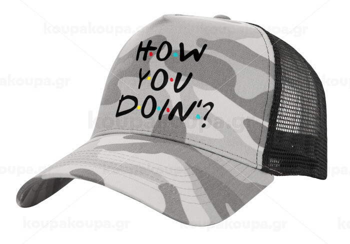 Friends How You Doin'?, Adult Structured Trucker Hat, with Mesh, (Camouflage) Army Camo (100% COTTON, ADULT, UNISEX, ONE SIZE)