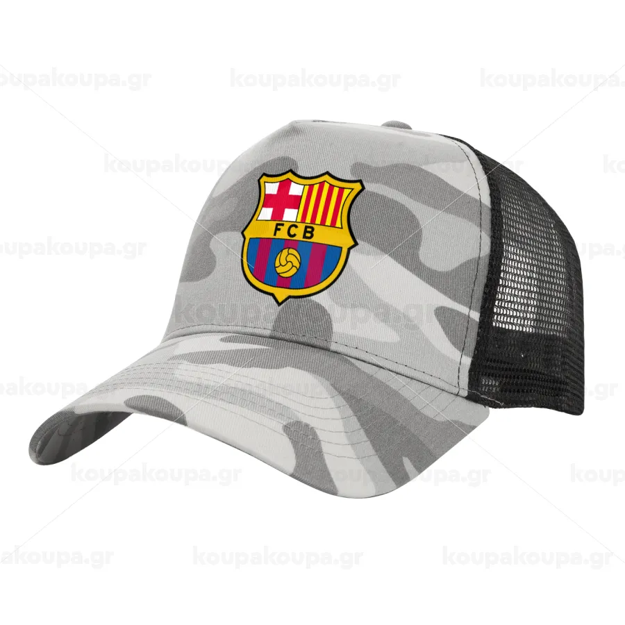 Barcelona FC, Adult Structured Trucker Hat, with Mesh, (Camouflage) Army Camo (100% COTTON, ADULT, UNISEX, ONE SIZE)