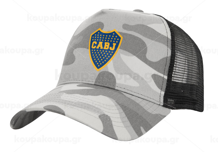 Club Atlético Boca Juniors, Adult Structured Trucker Hat, with Mesh, (Camouflage) Army Camo (100% COTTON, ADULT, UNISEX, ONE SIZE)