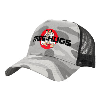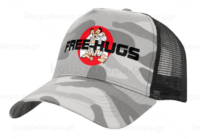 JUDO free hugs, Adult Structured Trucker Hat, with Mesh, (Camouflage) Army Camo (100% COTTON, ADULT, UNISEX, ONE SIZE)