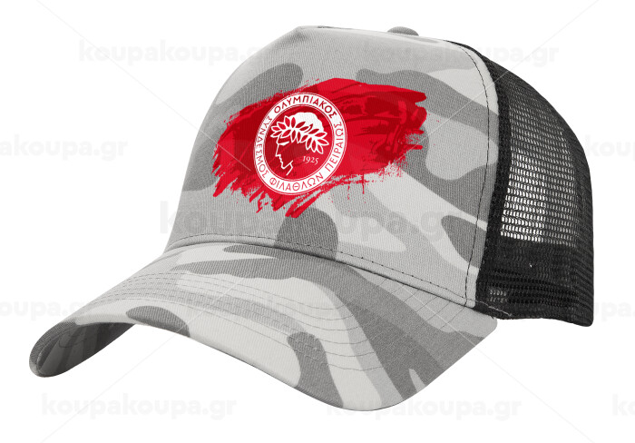 Olympiacos F.C., Adult Structured Trucker Hat, with Mesh, (Camouflage) Army Camo (100% COTTON, ADULT, UNISEX, ONE SIZE)