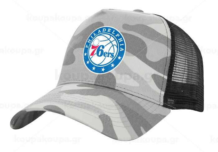 Philadelphia 76ers, Adult Structured Trucker Hat, with Mesh, (Camouflage) Army Camo (100% COTTON, ADULT, UNISEX, ONE SIZE)