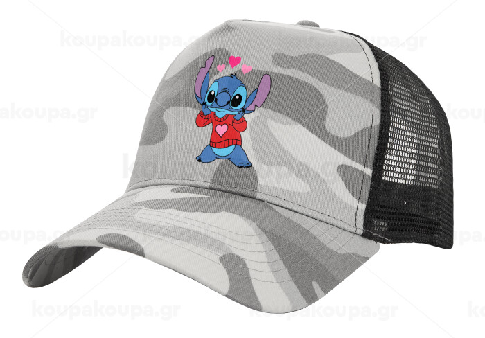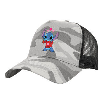 Stitch heart, Adult Structured Trucker Hat, with Mesh, (Camouflage) Army Camo (100% COTTON, ADULT, UNISEX, ONE SIZE)