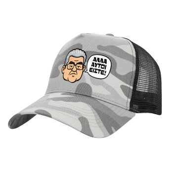Κουτσούμπας, "Αλλά αυτοί είστε!", Adult Structured Trucker Hat, with Mesh, (Camouflage) Army Camo (100% COTTON, ADULT, UNISEX, ONE SIZE)