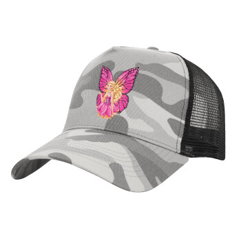 A fairy Barbie, Adult Structured Trucker Hat, with Mesh, (Camouflage) Army Camo (100% COTTON, ADULT, UNISEX, ONE SIZE)