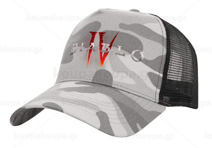 Diablo iv, Adult Structured Trucker Hat, with Mesh, (Camouflage) Army Camo (100% COTTON, ADULT, UNISEX, ONE SIZE)
