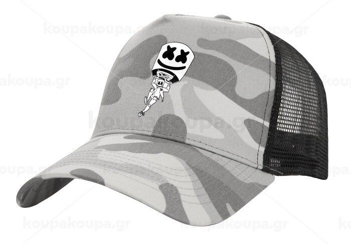 Fortnite Marshmello, Adult Structured Trucker Hat, with Mesh, (Camouflage) Army Camo (100% COTTON, ADULT, UNISEX, ONE SIZE)