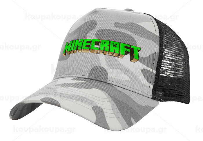 Minecraft logo green, Adult Structured Trucker Hat, with Mesh, (Camouflage) Army Camo (100% COTTON, ADULT, UNISEX, ONE SIZE)