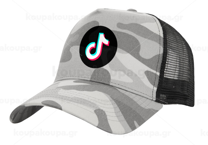 TikTok, Adult Structured Trucker Hat, with Mesh, (Camouflage) Army Camo (100% COTTON, ADULT, UNISEX, ONE SIZE)