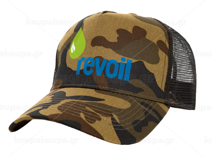 Πρατήριο καυσίμων REVOIL, Adult Structured Trucker Hat, with Mesh, (Camouflage) Army (100% COTTON, ADULT, UNISEX, ONE SIZE)
