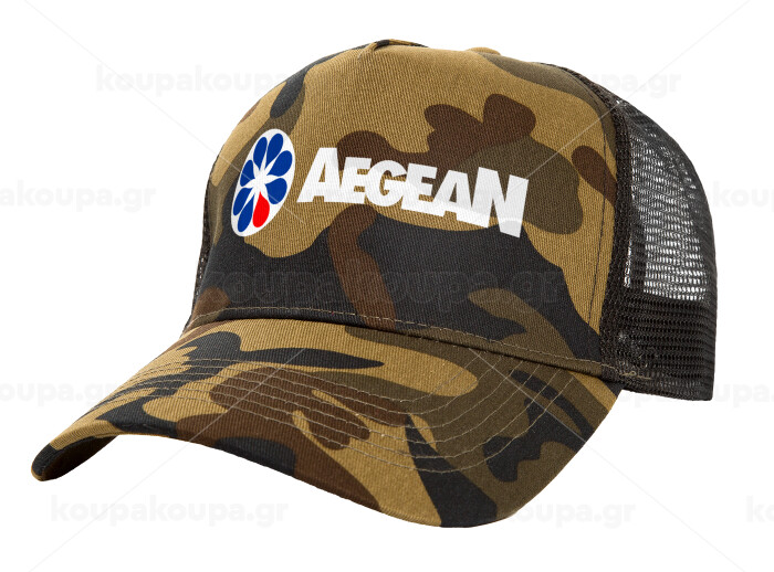 Πρατήριο καυσίμων AEGEAN, Adult Structured Trucker Hat, with Mesh, (Camouflage) Army (100% COTTON, ADULT, UNISEX, ONE SIZE)